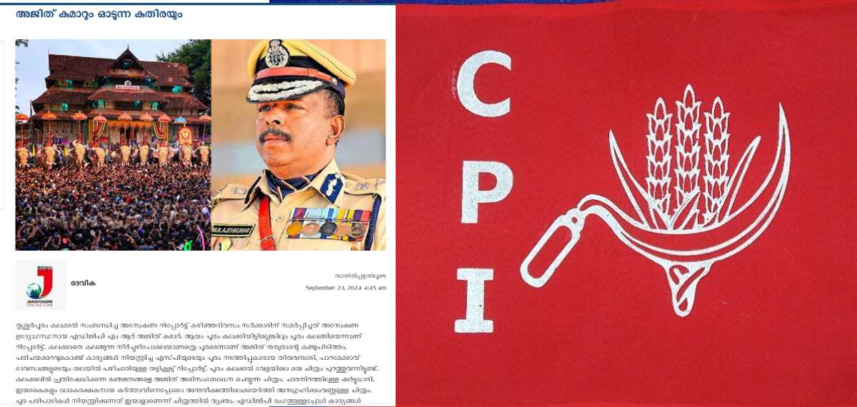 തൃശൂര്: തൃശൂര് പൂരം കലക്കലില് എഡിജിപി എം ആര് അജിത് കുമാറിനെതിരെ വീണ്ടും രൂക്ഷ വിമര്ശനവുമായി സിപിഐ മുഖപത്രം ജനയുഗം. അജിത് കുമാറിന്റെ ഇടപെടലില് ദുരൂഹമുണ്ടെന്ന് ജനയുഗത്തിന്റെ മുഖപ്രസംത്തില് പറയുന്നു. റിപ്പോര്ട്ട് അനിശ്ചിതമായി വൈകിയതില് അസ്വാഭാവികതയുണ്ടെന്നും തൃശൂരിലുണ്ടായിട്ടും എഡിജിപി ഇടപെട്ടില്ലെന്നും ‘ആശയക്കുഴപ്പങ്ങള്ക്ക് വഴിവച്ച അന്വേഷണ റിപ്പോര്ട്ട്’ എന്ന തലക്കെട്ടില് പ്രസിദ്ധീകരിച്ച മുഖപ്രസംഗത്തില് വിമര്ശിക്കുന്നു.