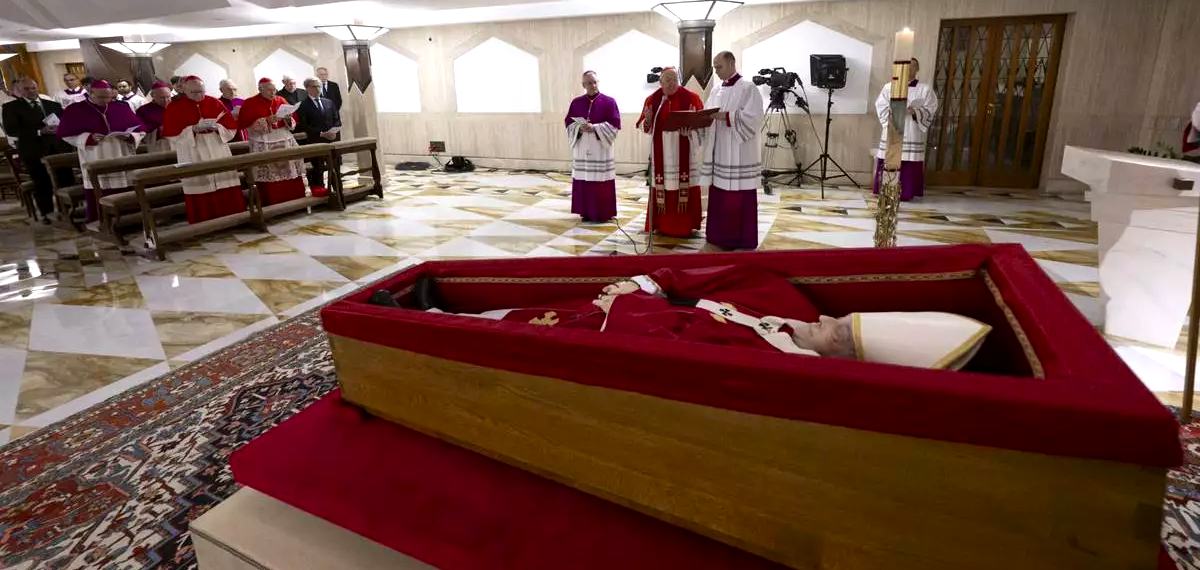 അദ്ദേഹത്തിന്റെ വസതിയായ സാൻ്റ മാർത്ത ചാപ്പലിലാണ് ഭൗതികദേഹം ഇപ്പോഴുള്ളത്. ശനിയാഴ്ച ഫ്രാൻസിസ് മാർപാപ്പയുടെ കബറടക്കം നടത്താൻ കർദ്ദിനാൾമാരുടെ യോഗം തീരുമാനിച്ചു. സംസ്കാരം അടക്കമുള്ള കാര്യങ്ങളിൽ തീരുമാനമെടുക്കാൻ കർദിനാൾമാരുടെ യോഗം 12 മണിയോടെയാണ് ആരംഭിച്ചത്.
