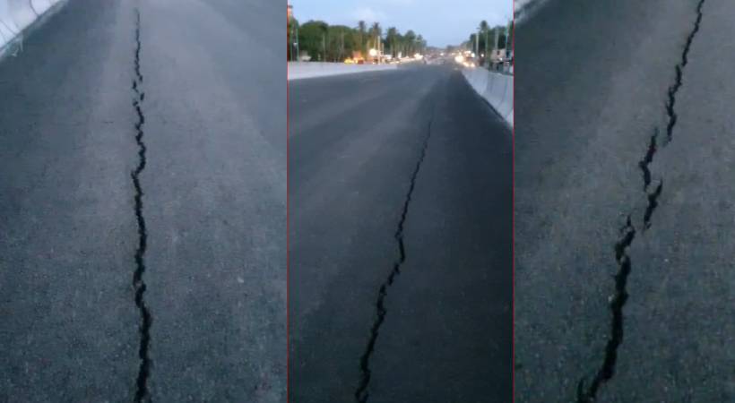 ഇന്നലെ വൈകുന്നേരമാണ് പാലത്തിൽ വിള്ളൽ കാണുന്നത്. തുടർന്ന് റോഡിലെ വിള്ളലിന്റെ ദൃശ്യങ്ങൾ സാമൂഹ്യ മാധ്യമങ്ങളിൽ പ്രചരിച്ചിരുന്നു. നിർമാണ പ്രവർത്തികൾ തുടർന്നുകൊണ്ടിരിക്കുന്ന മേൽപ്പാലത്തിലാണ് വിള്ളൽ കണ്ടെത്തിയത്. നിലവിൽ ഈ ഭാഗം ഗതാഗത്തിന് തുറന്നു കൊടുത്തിട്ടില്ല. വിള്ളലിലൂടെ വെള്ളം ഇറങ്ങി മലപ്പുറത്ത് ഉണ്ടായത് പോലെ പാലം തകരുമോ എന്ന ഭീതിയിലാണ് നാട്ടുകാർ.