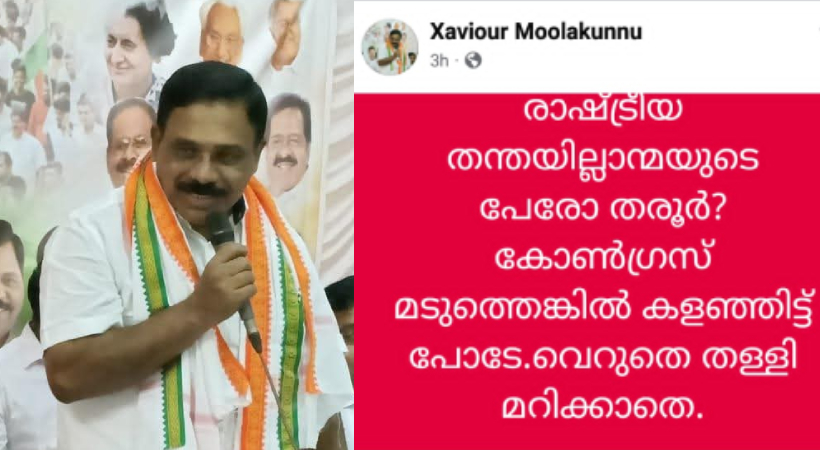 കോണ്ഗ്രസ് നേതാവ് ശശി തരൂരിനെതിരെ അസഭ്യവര്ഷവുമായി കോൺഗ്രസ് മണ്ഡലം പ്രസിഡൻ്റ്. ചിറക്കടവ് മണ്ഡലം പ്രസിഡൻ്റ് സേവ്യര് മൂലക്കുന്നാണ് എംപിയായ തരൂരിനെതിരെ ഫെയ്സ്ബുക്ക് പോസ്റ്റിട്ടിരിക്കുന്നത്.