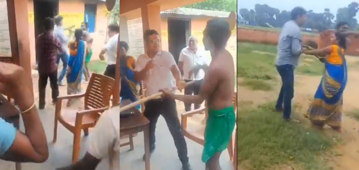 ബിഹാറിലെ ഷാവാസ്പൂർ മിഡിൽ സ്കൂളിലാണ് നാടകീയ രംഗങ്ങൾ അരങ്ങേറിയത്. ഹോം വർക്ക് ചെയ്യാത്തതിന് വിദ്യാർത്ഥിയെ അധ്യാപകൻ അടിച്ചതും ശകാരിച്ചതും വീട്ടുകാർക്ക് ഇഷ്ടപ്പെടാത്തതിനാലാണ് ആക്രമിച്ചതെന്നാണ് ദേശീയ മാധ്യമങ്ങൾ റിപ്പോർട്ട് ചെയ്യുന്നത്.