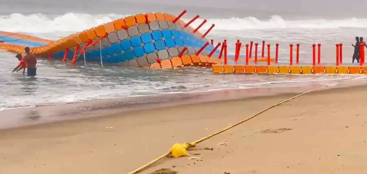 വർക്കല: പരിശോധനയ്ക്ക് സ്ഥാപിച്ച ഫ്ലോട്ടിങ് ബ്രിഡ്ജ് വീണ്ടും തകർന്നു. തിരുവനന്തപുരം വർക്കല പാപനാശം തീരത്തെ ഫ്ലോട്ടിങ് ബ്രിഡ്ജാണ് തകർന്നത്.