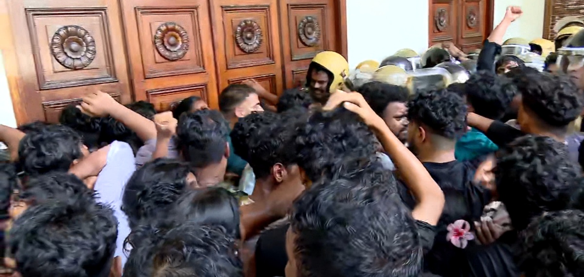 എസ്എഫ്ഐ പ്രവർത്തകർ സർവകലാശാലയിലേക്ക് ഇരച്ചുകയറുകയും പ്രധാന വാതിൽ തള്ളിത്തുറന്ന് സർവകലാശാലയിലേക്ക് പ്രവേശിക്കുകയും ചെയ്തു. വിസിയുടെ ചേംബറിലേയ്ക്ക് തള്ളികയറാനാണ് പ്രവർത്തകരുടെ ശ്രമം.