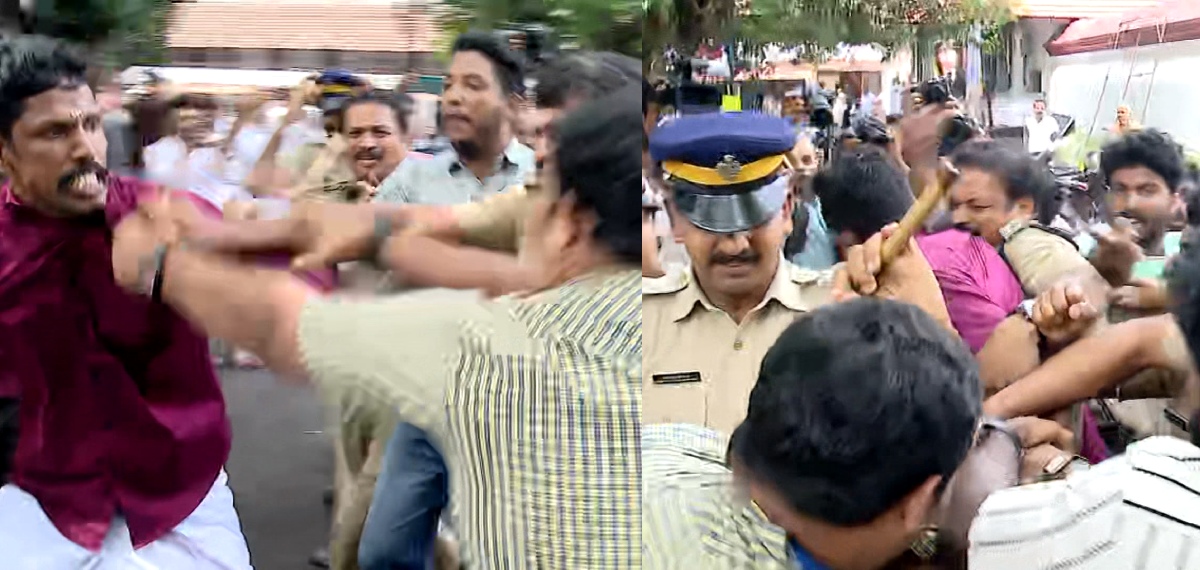 എന്നാൽ ഇതിനിടെ അവിടെയുണ്ടായിരുന്ന എസ്എഫ്ഐ പ്രവർത്തകർ യുവമോർച്ച പ്രവർത്തരുമായി സംഘർഷമുണ്ടായി. ഇതേ തുടർന്ന് പൊലീസ് ഇടപെടുകയായിരുന്നു. തുടർന്ന് പൊലീസെത്തി ഇരു വിഭാഗത്തെയും പിടിച്ചുമാറ്റി.
