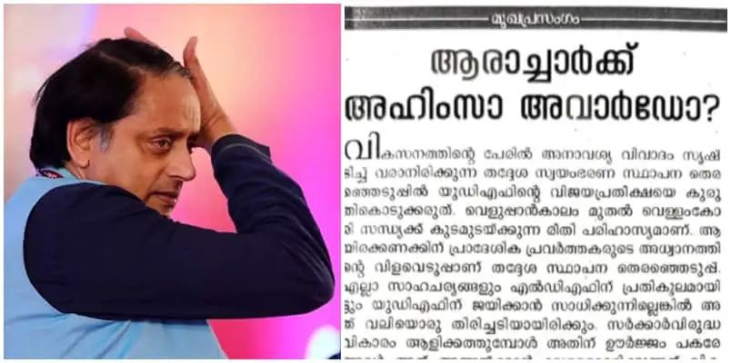 സർക്കാർ വിരുദ്ധ വികാരം ആളിപ്പടരുമ്പോള് അതിന് ഊർജം പകരേണ്ടവർ തന്നെ അത് അണയ്ക്കാൻ വെള്ളം ഒഴിക്കരുതെന്നും വീക്ഷണം വിമർശിക്കുന്നു. എല്ഡിഎഫ് സർക്കാരിനെതിരെ പൊരുതുന്ന കോണ്ഗ്രസിനെ മുണ്ടില് പിടിച്ചു പുറകോട്ട് വലിക്കുന്ന രീതി ആത്മഹത്യാപരമാണെന്നും വീക്ഷണം തരൂരിനെ ഓർമിപ്പിക്കുന്നു. ട്രംപുമായി കൂടിക്കാഴ്ച നടത്തിയ മോദിയെ പ്രശംസിച്ചതിനെയും വീക്ഷണം നിശിതമായി വിമർശിക്കുന്നുണ്ട്.
