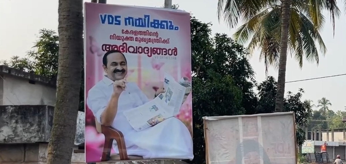 ‘വി ഡി എസ് നയിക്കും, കേരളത്തിന്റെ നിയുക്ത മുഖ്യമന്ത്രിക്ക് അഭിവാദ്യങ്ങള്’, എന്ന വാചകങ്ങളാണ് ഫ്ലക്സില് ഉണ്ടായിരുന്നത്.